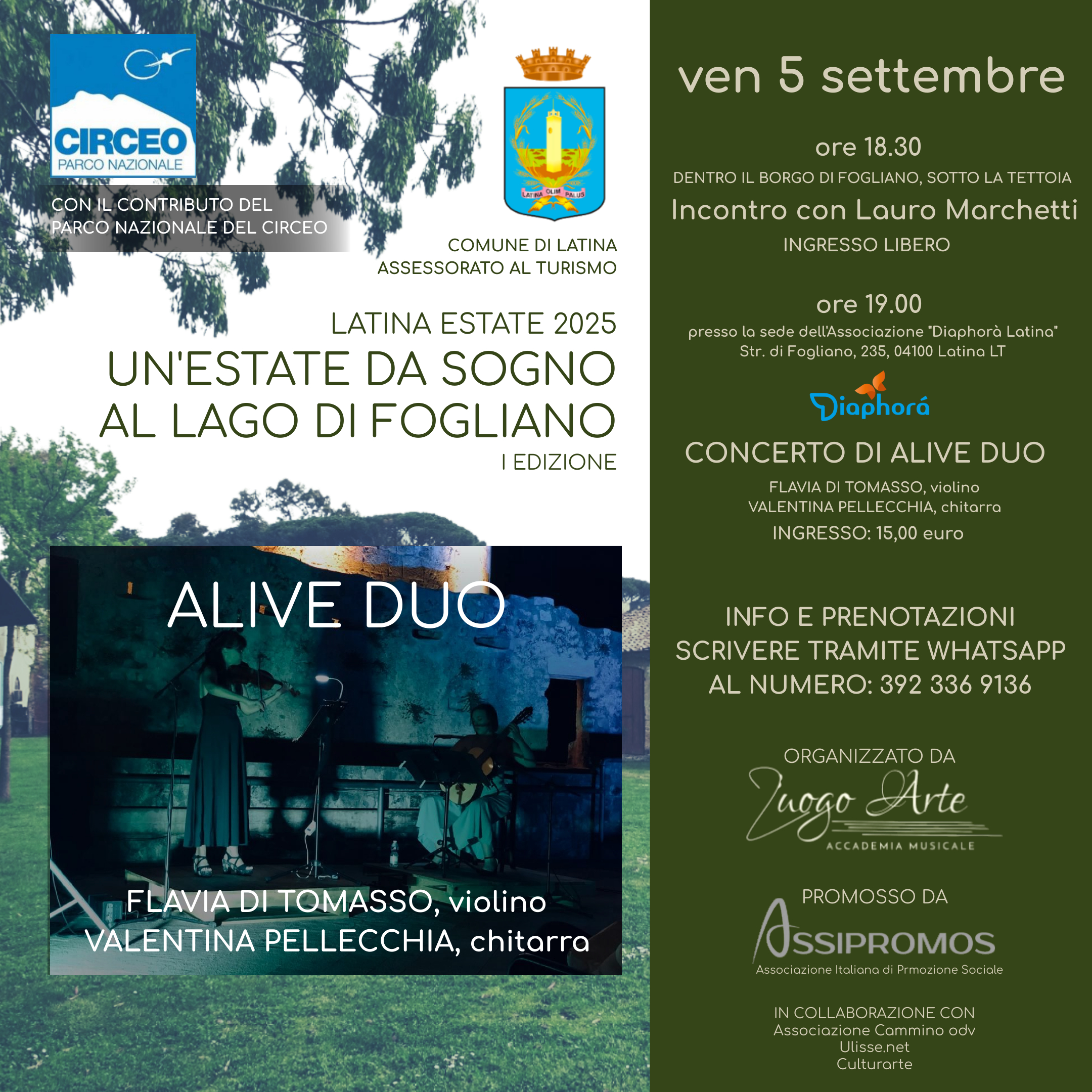 Il progetto "Latina Arte & Musica", con acronimo L.A.M., intende promuovere eventi sul territorio pontino